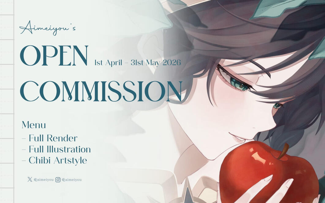 Diperbolehkan untuk mengupload hasil komisi selama masih terdapat credit atas nama Aimeiyou (boleh menambah, namun TOLONG jangan menghapus watermark asli).